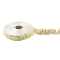 Лента жаккардовая 23 - 25 мм "BLITZ" С1857 рис. 9821В 25 м лента отделочная БЕЛЫЙ/под золотоВойдите в личный кабинет,