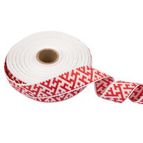 Лента жаккардовая 32 мм "Gamma" С3774 25 м отделочная "Орнамент для северных народов" рис 9894 белый/красныйВойдите в личный кабинет,
