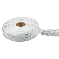 Лента жаккардовая 23 - 25 мм "BLITZ" С1857 рис. 9902В 25 м лента отделочная БЕЛЫЙ/под сереброВойдите в личный кабинет,