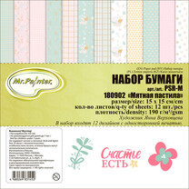 Бумага для скрапбукинга "Mr.Painter" PSR-M Набор бумаги для скрапбукинга 190 г/кв.м 15 x 15 см 12 л. 180902 "Мятная пастила"Войдите в личный кабинет,