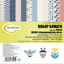 Бумага для скрапбукинга "Mr.Painter" PSR-M Набор бумаги для скрапбукинга 190 г/кв.м 15 x 15 см 12 л. 180105 "Скандинавское лето"Войдите в личный кабинет,