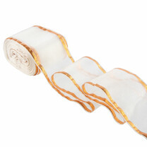 Лента капроновая 75 мм С 3502 с метал. кромкой для бантов 25 м БЕЛЫЙ/ "под бронзу"