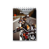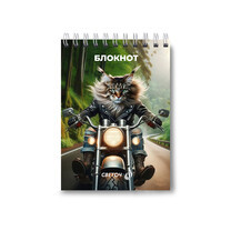 Б122 "Светоч" Блокнот на гребне, выборочный лак, A6 80 л. 4 шт. клетка Пушистый байкер 01207