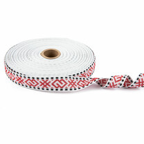 Лента жаккардовая 24 мм "Gamma" C3885 25 м отделочная "Орнамент для северных народов" рис 9876 №3 бел/красн/черный