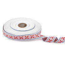 Лента жаккардовая 24 мм "Gamma" C3885 25 м отделочная "Орнамент для северных народов" рис 9867 №1 бел/красн/синий