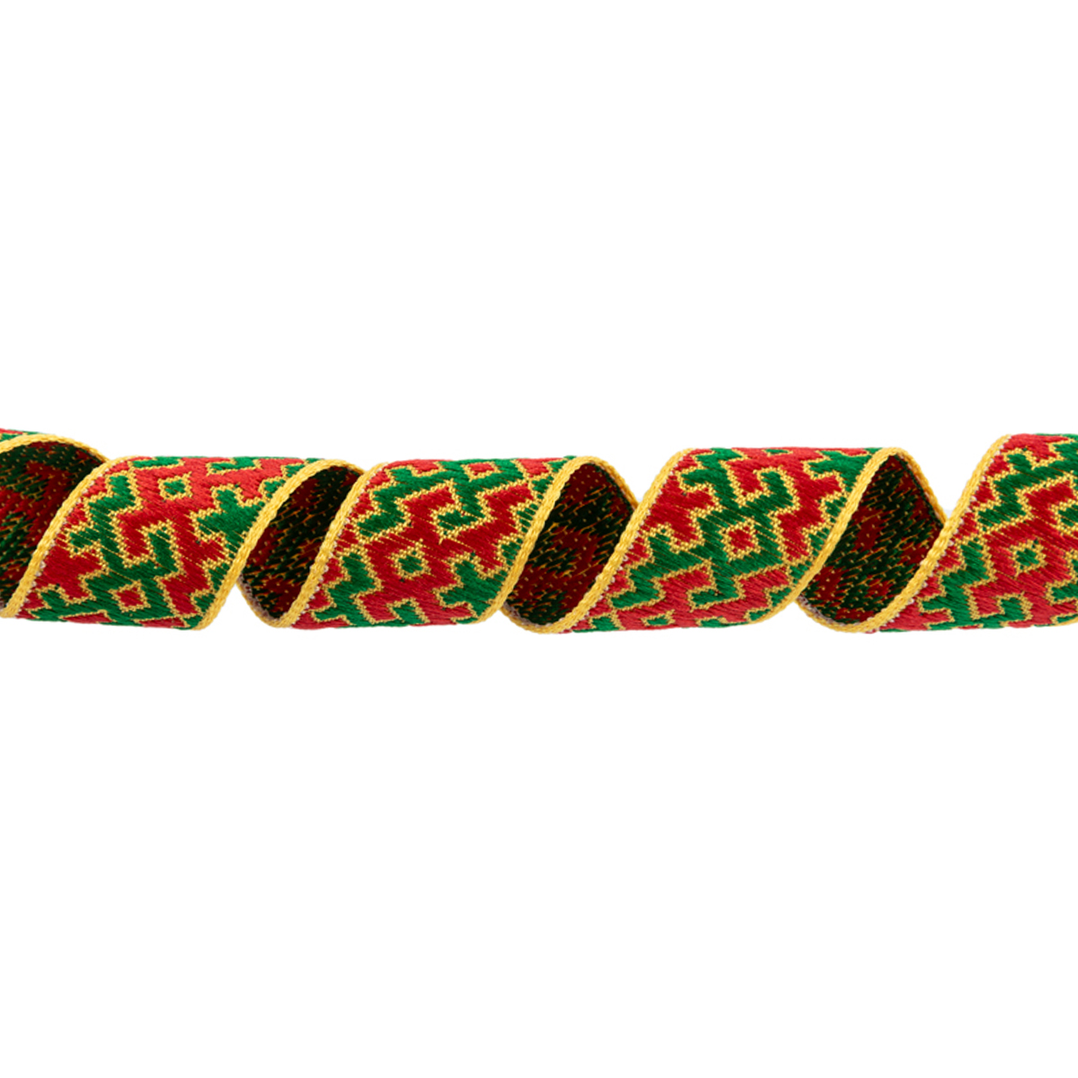 Лента жаккардовая 18 мм "Gamma" С3771 25 м отделочная "Орнамент для северных народов" рис 9692желтый/красный/зеленый (№6)