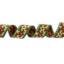 Лента жаккардовая 18 мм "Gamma" С3771 25 м отделочная "Орнамент для северных народов" рис 9692 зеленый/желтый/красный (№9)