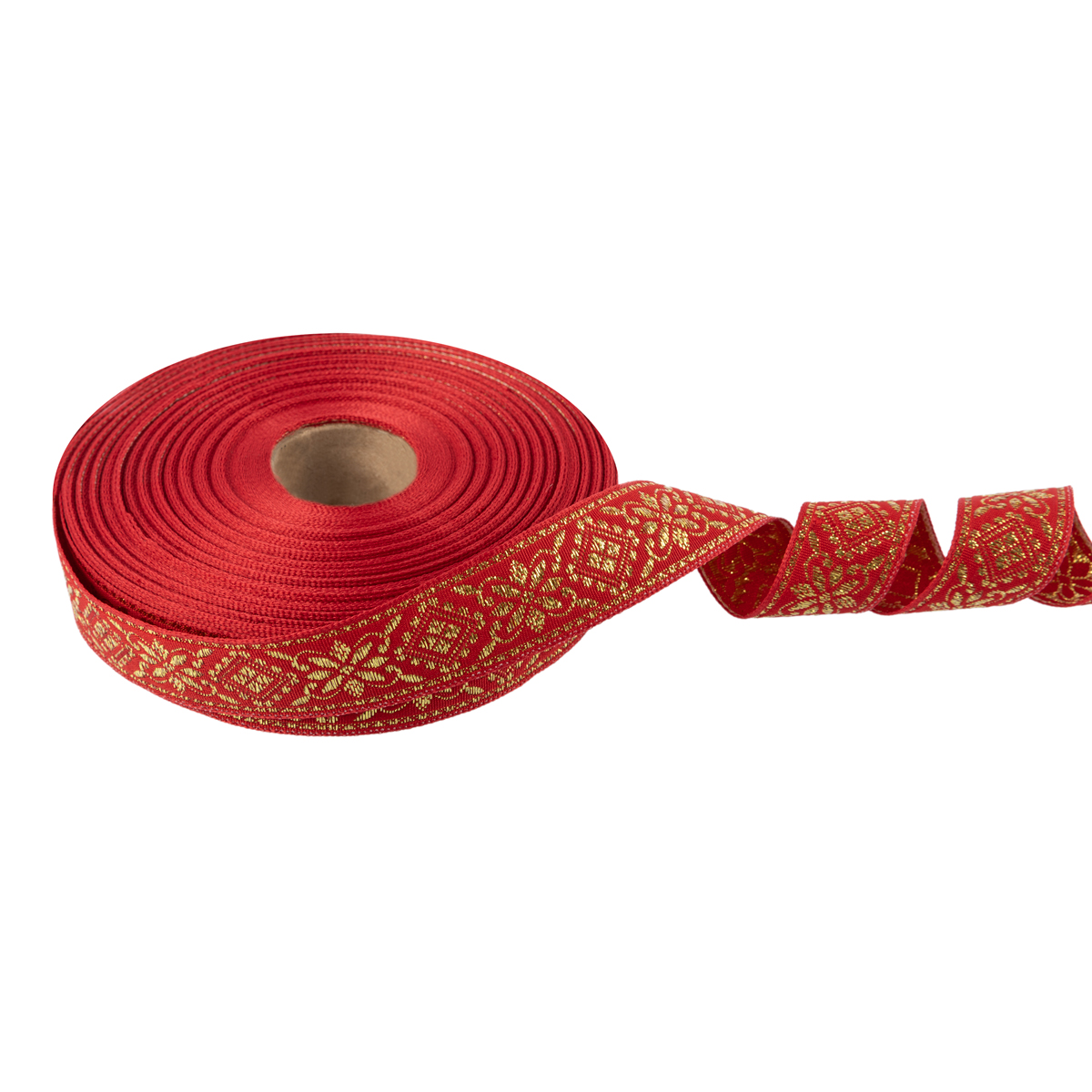 Лента жаккардовая 23 - 25 мм BLITZ С1857 рис. 9824В 25 м лента отделочная красный /под золото. В интернет-магазине Канцлер Арт широкий ассортимент товаров, быстрая доставка и регулярные скидки.