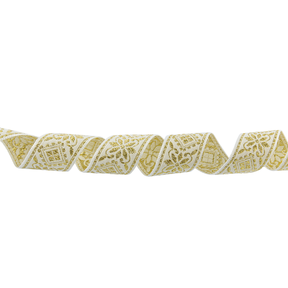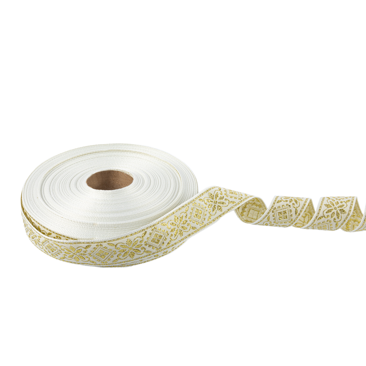 Лента жаккардовая 23 - 25 мм "BLITZ" С1857 рис. 9824В 25 м лента отделочная БЕЛЫЙ/под золото