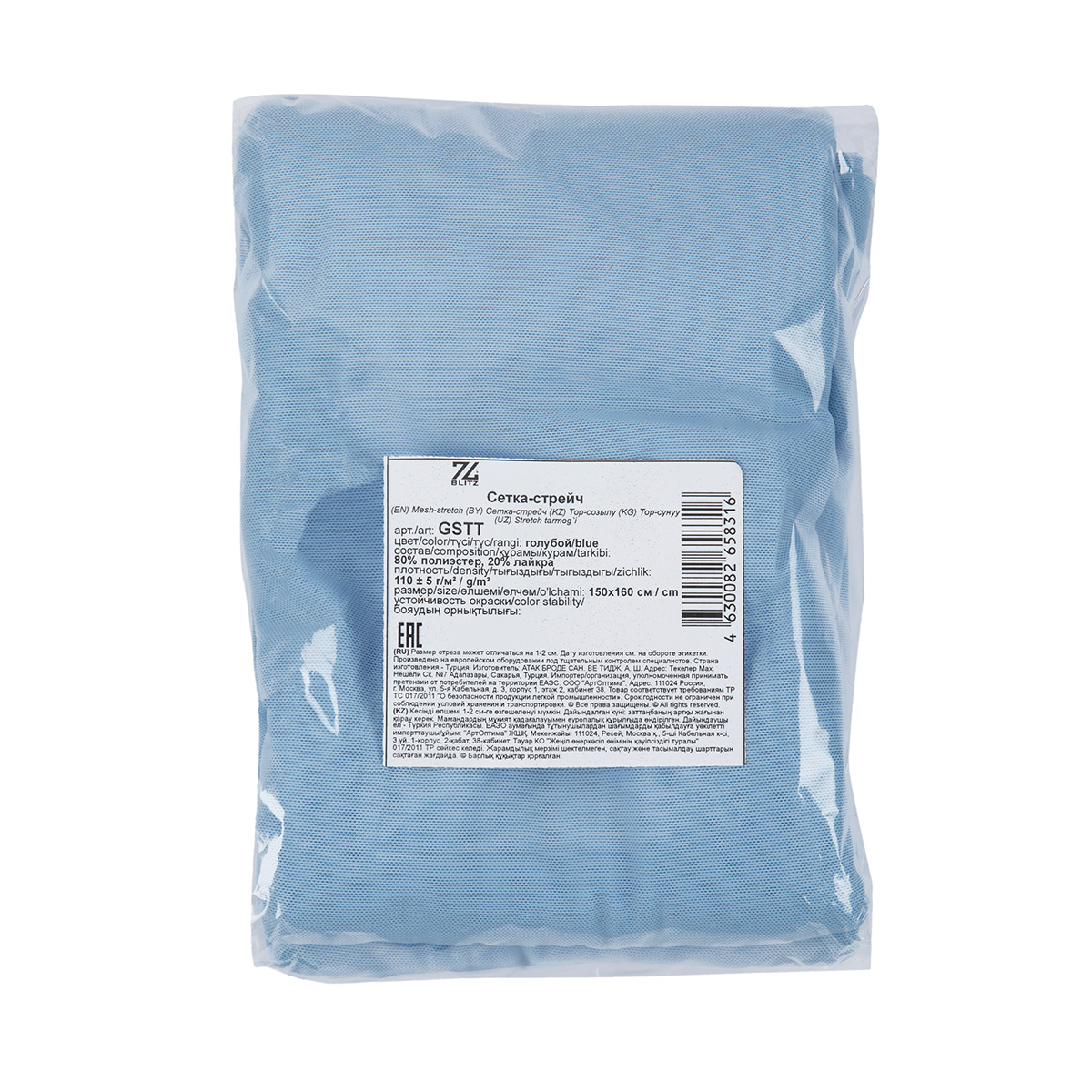 Ткань сетка-стрейч GSTT 110 г/кв.м ± 5 ФАСОВКА 150 см х 160 см ± 2 см 80% полиэстер, 20% лайкра голубой/blue. В интернет-магазине Канцлер Арт широкий ассортимент товаров, быстрая доставка и регулярные скидки.