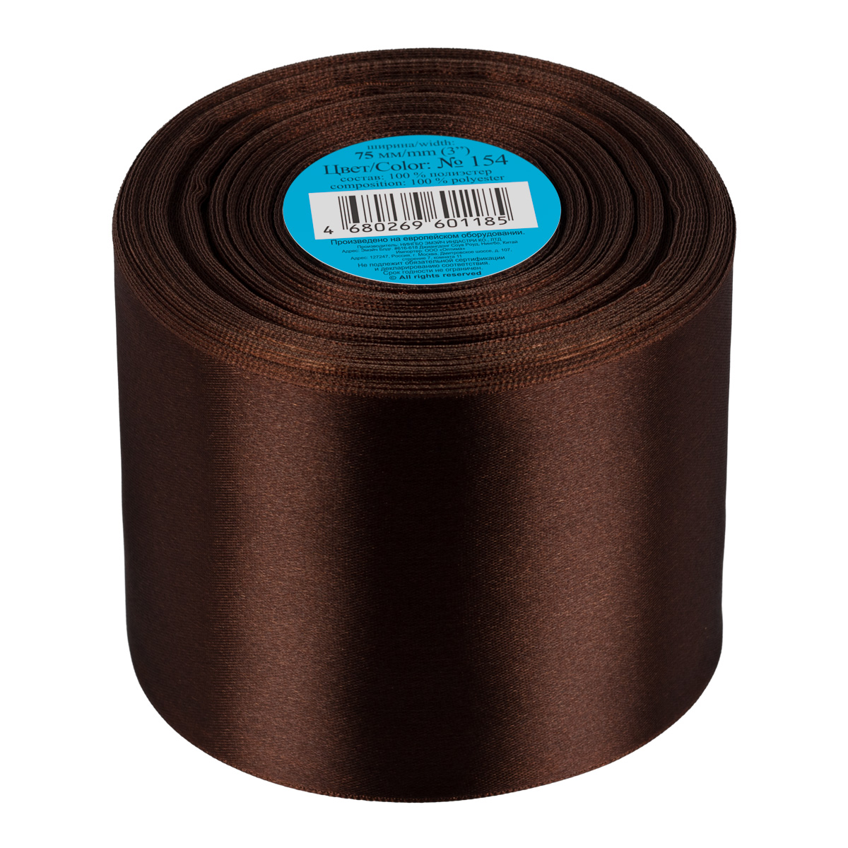 Лента атласная 75 мм ( 3 ") "Gamma" в ТЕРМОПЛЕНКЕ 33 м ± 2 м №154 т.коричневый
