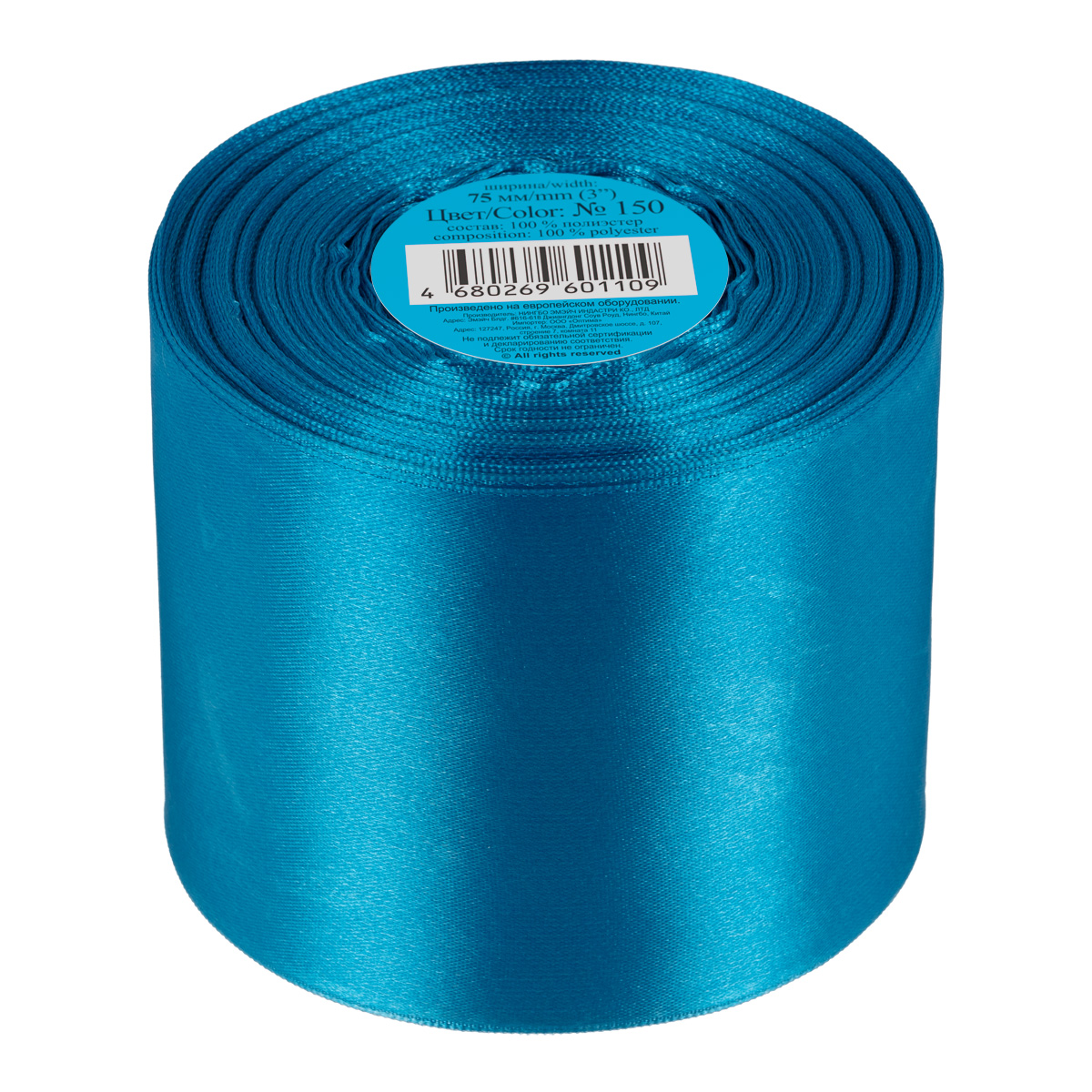 Лента атласная 75 мм ( 3 ") "Gamma" в ТЕРМОПЛЕНКЕ 33 м ± 2 м №150 сине-голубой