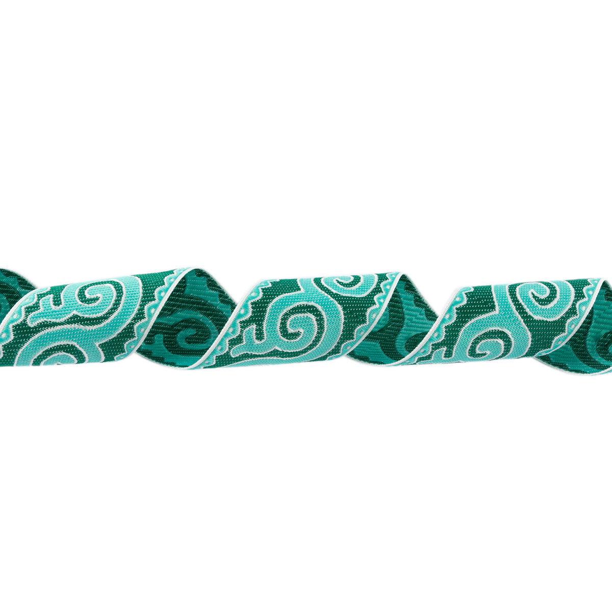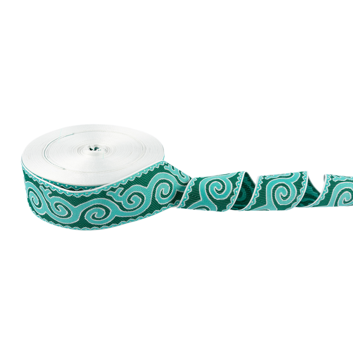 Лента жаккардовая 50 мм С3775 25 м отделочная "Орнамент для северных народов" рис 9605 белый/тополевый/зеленый