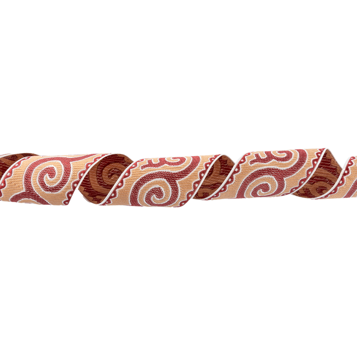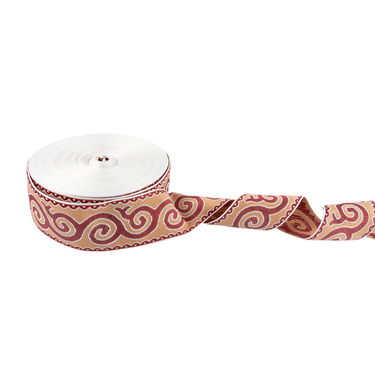Лента жаккардовая 50 мм С3775 25 м отделочная "Орнамент для северных народов" рис 9605 белый/бордовый/ч.роза