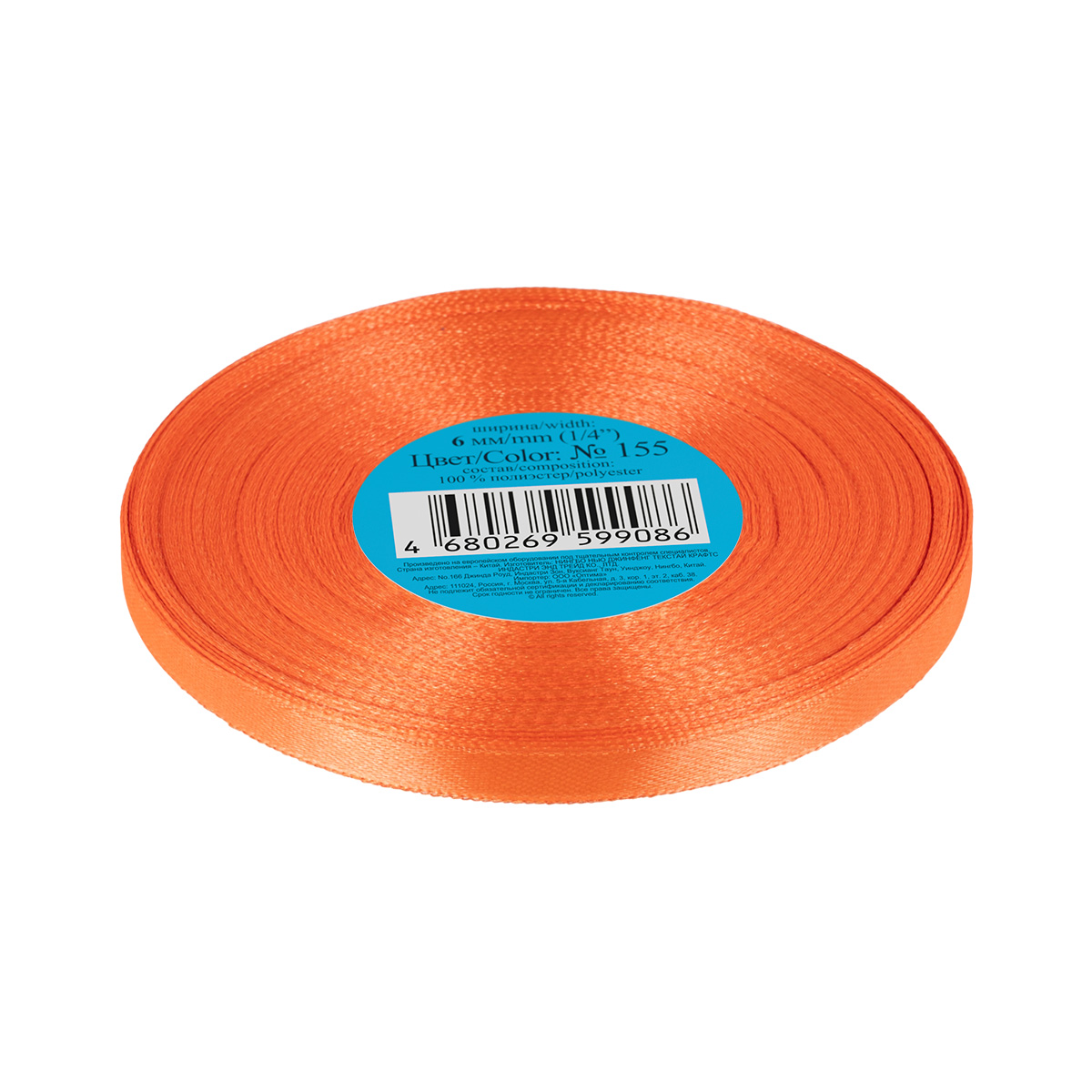 Лента атласная 6 мм ( 1/4 ") "Gamma" в ТЕРМОПЛЕНКЕ 33 м ± 2 м №155 св-оранжевый