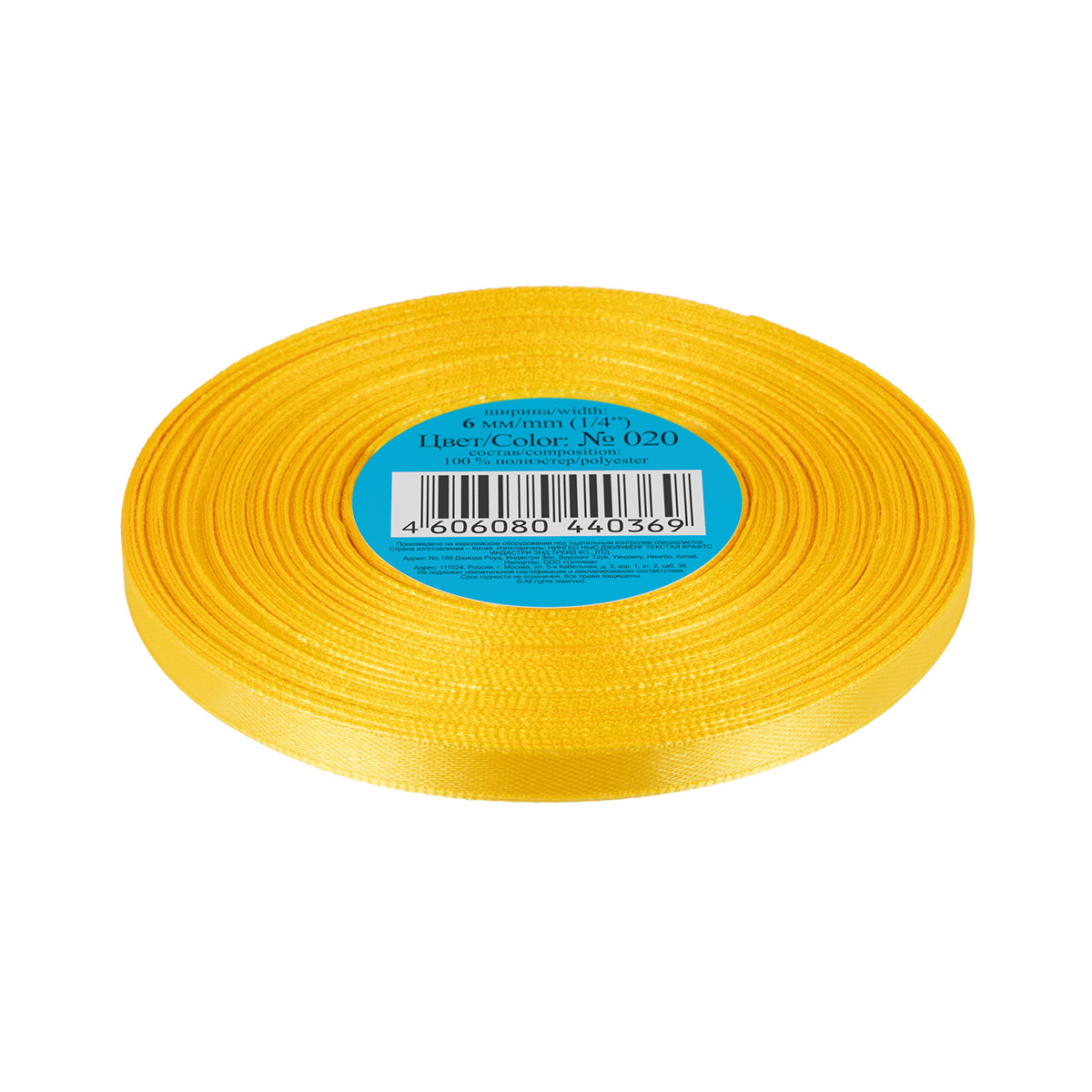 Лента атласная 6 мм ( 1/4 ") "Gamma" в ТЕРМОПЛЕНКЕ 33 м ± 2 м №020 желтый