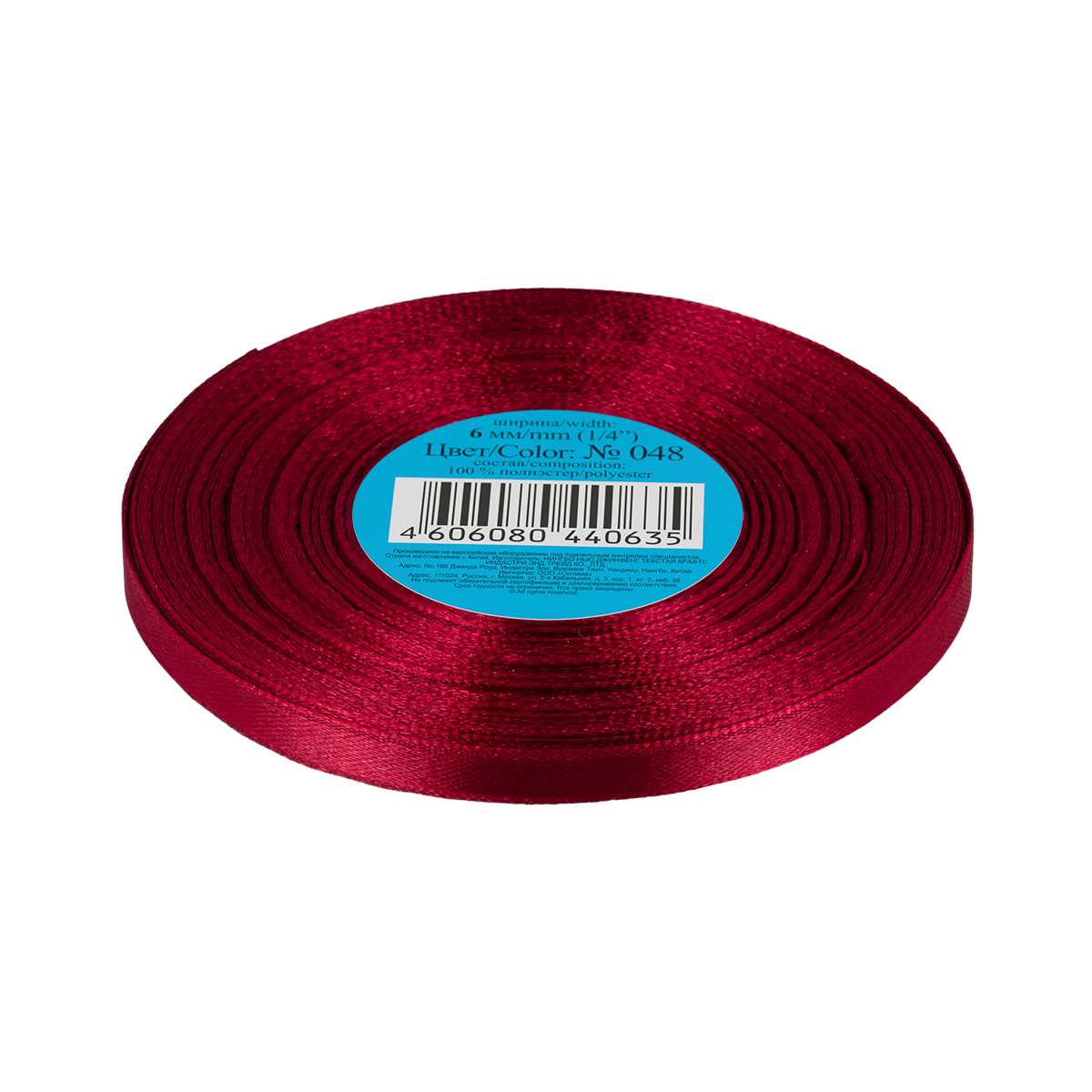 Лента атласная 6 мм ( 1/4 ") "Gamma" в ТЕРМОПЛЕНКЕ 33 м ± 2 м №048 бордовый