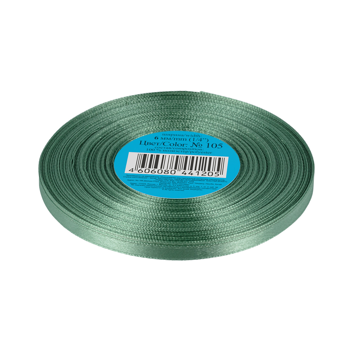 Лента атласная 6 мм ( 1/4 ") "Gamma" в ТЕРМОПЛЕНКЕ 33 м ± 2 м №105 зеленый
