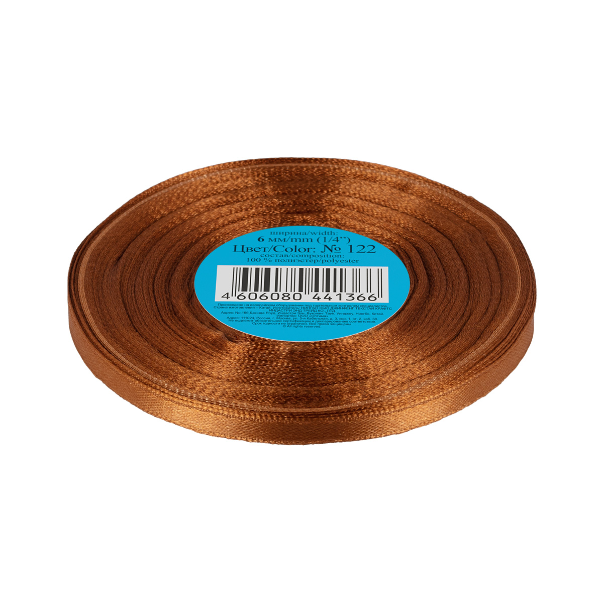 Лента атласная 6 мм ( 1/4 ") "Gamma" в ТЕРМОПЛЕНКЕ 33 м ± 2 м №122 св.коричневый