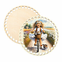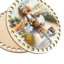 Заготовка для декорирования "Love2art" ДВ-01 Набор донышек для вязания "Глянцевый" фанера d 15 см х 0.4 см 2 шт 05 Девочка на велосипеде
