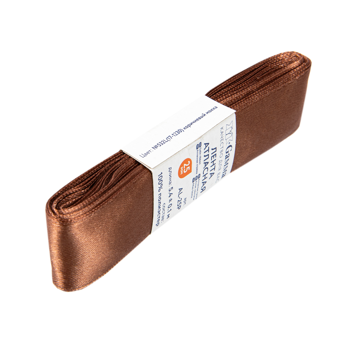 Лента атласная 25 мм ( 1 ) Gamma AL-25P ФАСОВКА 5 x 5.4 м №532L(17-1230) коричневый мокка. В интернет-магазине Канцлер Арт широкий ассортимент товаров, быстрая доставка и регулярные скидки.