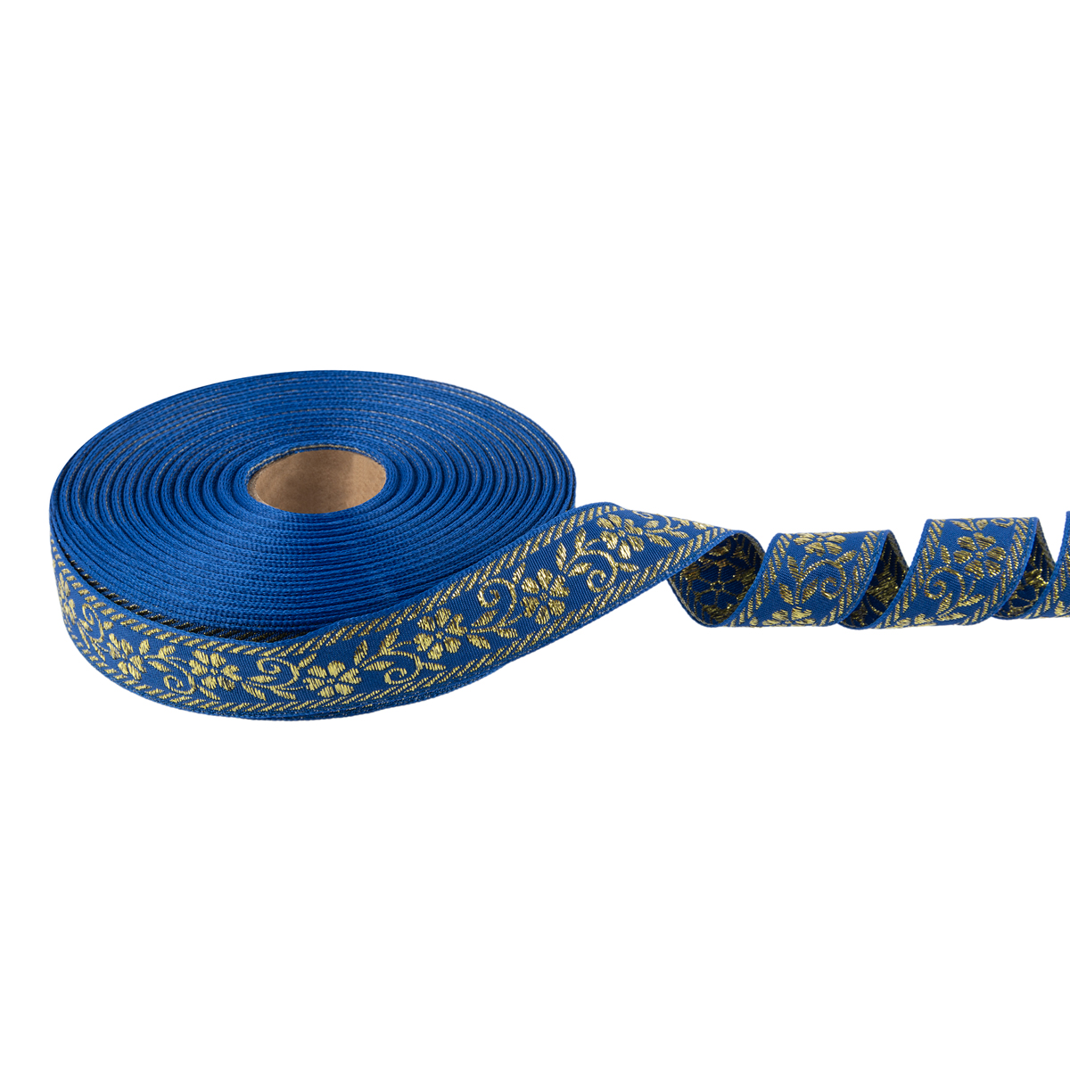 Лента жаккардовая 23 - 25 мм "BLITZ" С1857 рис. 9839В 25 м лента отделочная синий /под золото