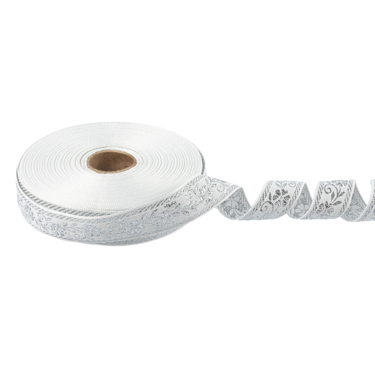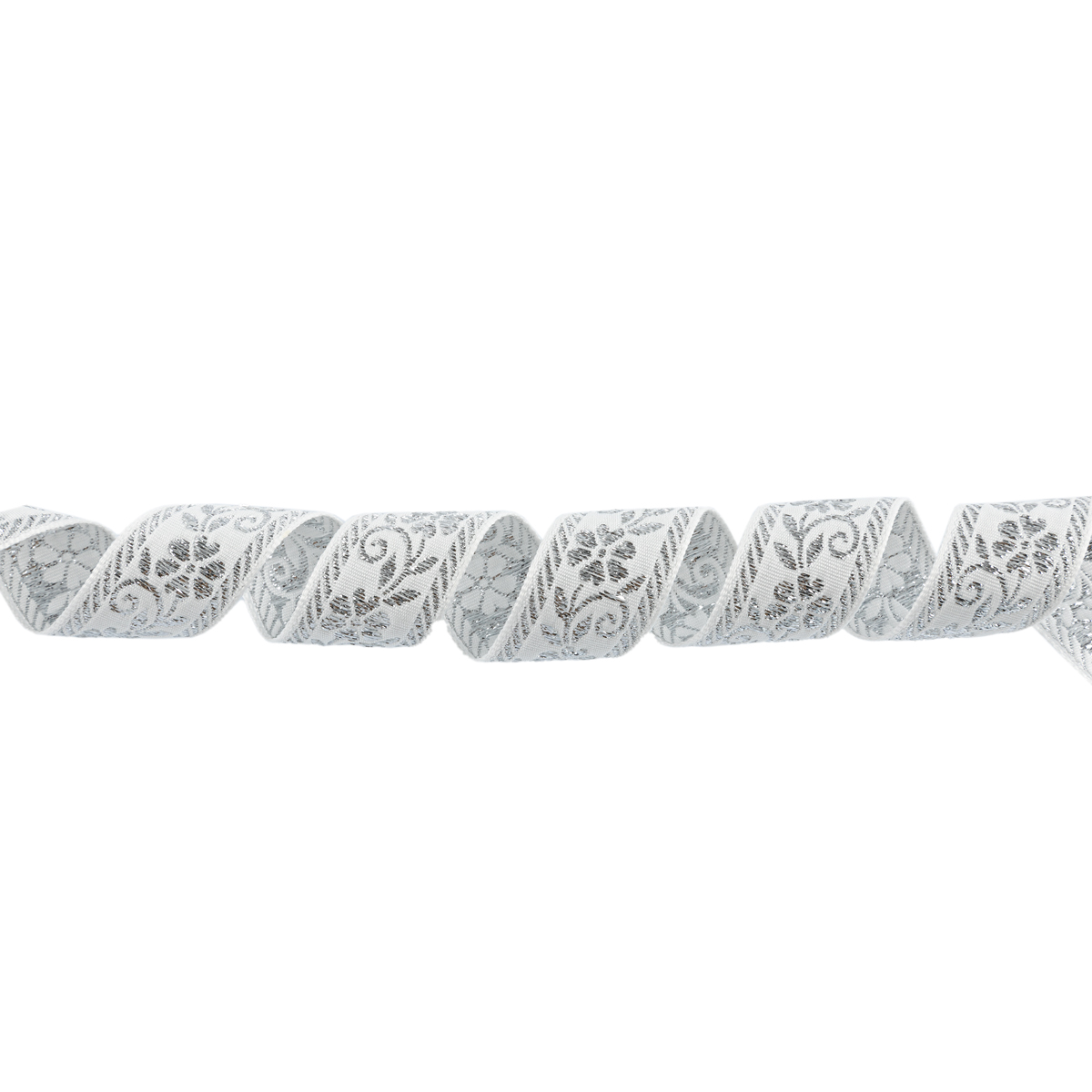 Лента жаккардовая 23 - 25 мм "BLITZ" С1857 рис. 9839В 25 м лента отделочная БЕЛЫЙ/под серебро