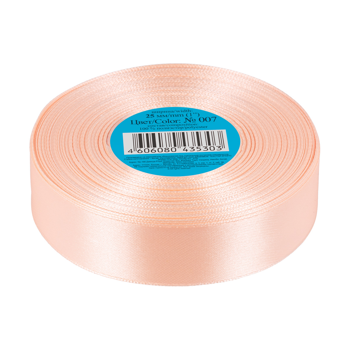 Лента атласная 25 мм ( 1 ) Gamma в ТЕРМОПЛЕНКЕ 33 м ± 2 м №007 персиковый. В интернет-магазине Канцлер Арт широкий ассортимент товаров, быстрая доставка и регулярные скидки.