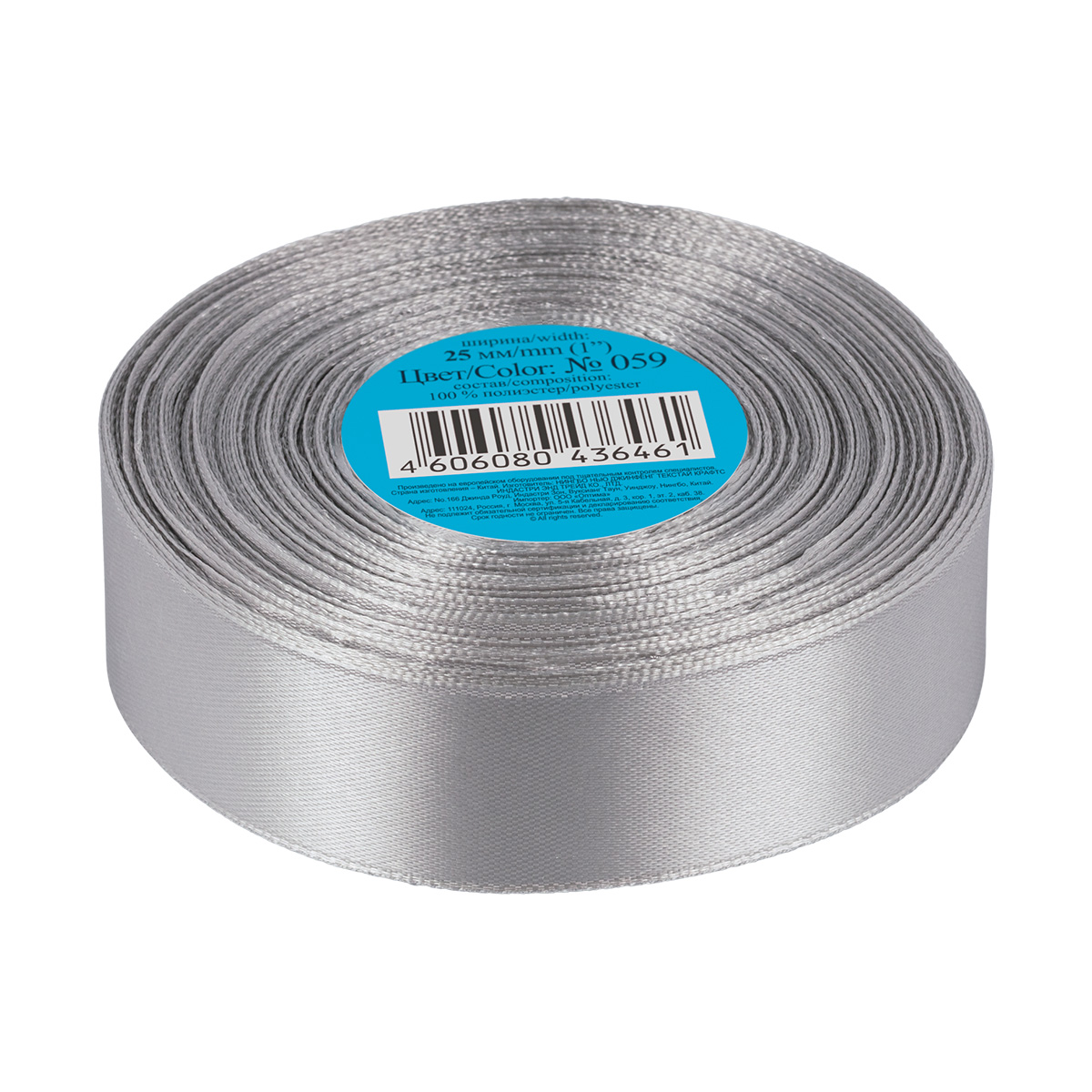 Лента атласная 25 мм ( 1 ) Gamma в ТЕРМОПЛЕНКЕ 33 м ± 2 м №059 серый. В интернет-магазине Канцлер Арт широкий ассортимент товаров, быстрая доставка и регулярные скидки.