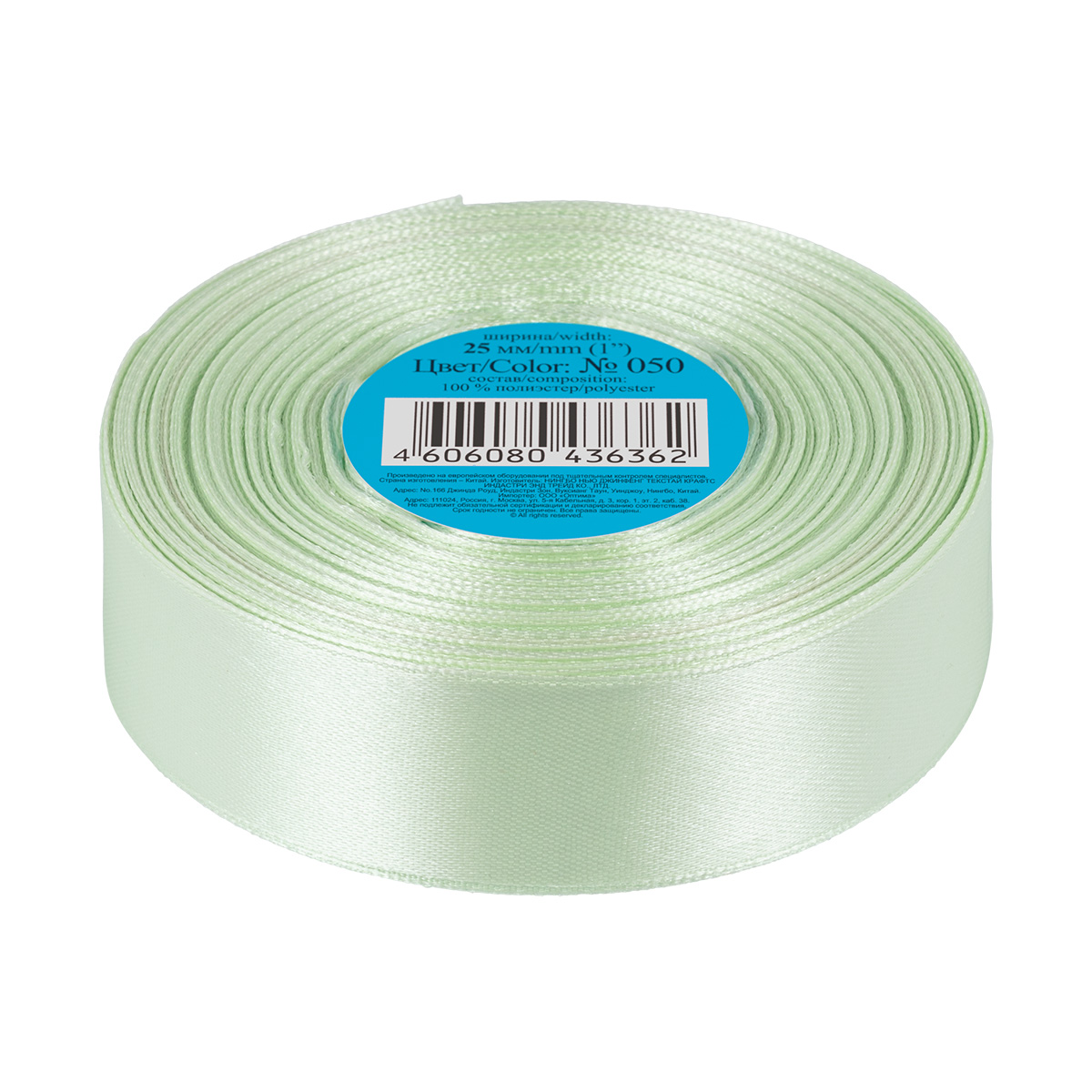 Лента атласная 25 мм ( 1 ") "Gamma" в ТЕРМОПЛЕНКЕ 33 м ± 2 м №050 мятный