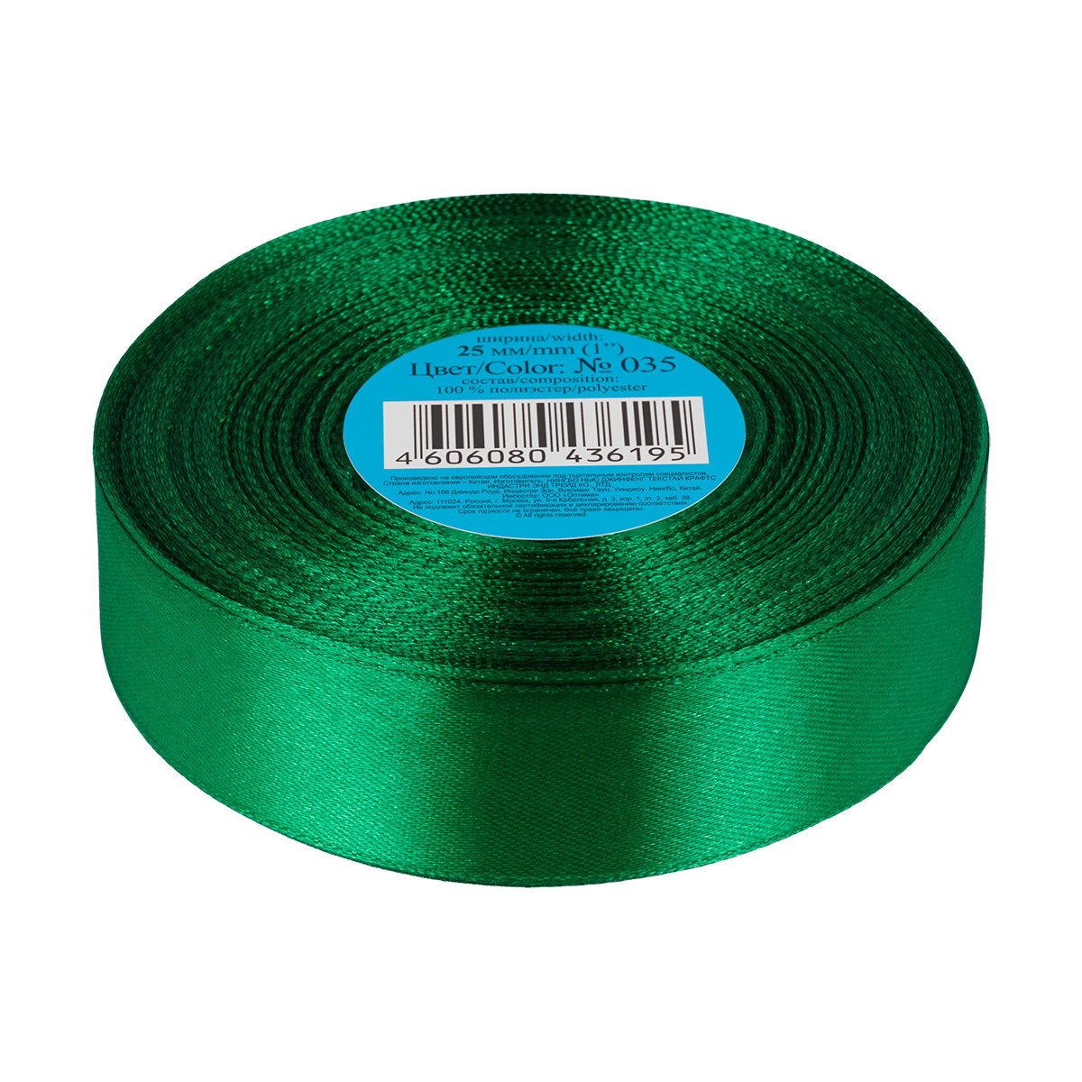 Лента атласная 25 мм ( 1 ") "Gamma" в ТЕРМОПЛЕНКЕ 33 м ± 2 м №035 зеленый