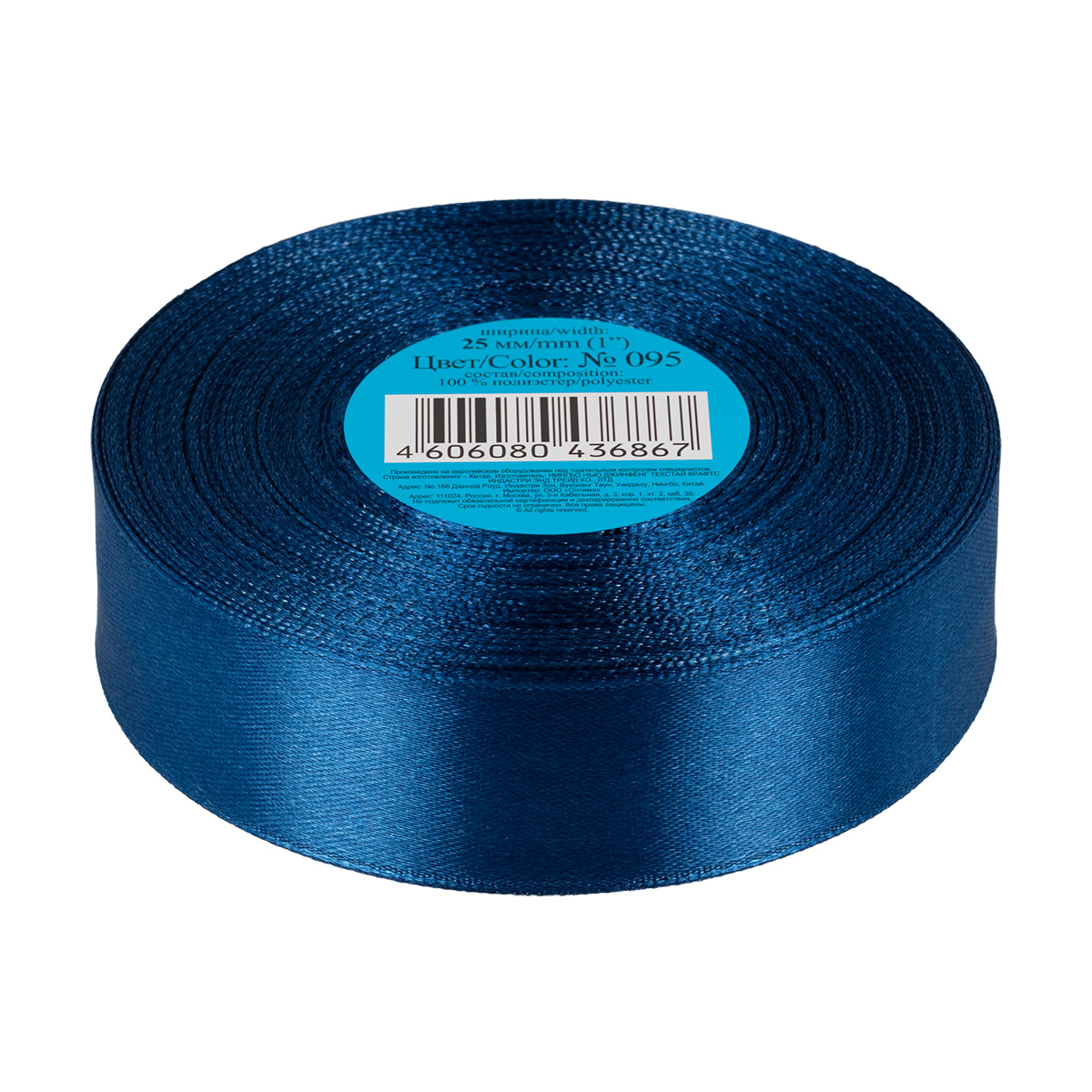 Лента атласная 25 мм ( 1 ") "Gamma" в ТЕРМОПЛЕНКЕ 33 м ± 2 м №095 синий