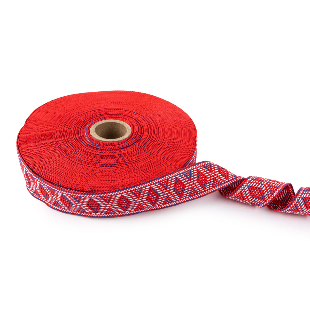 Лента жаккардовая 30 мм "Gamma" C3881 25 м отделочная "Орнамент для северных народов" рис 9854 № 1 красн/бел/синий