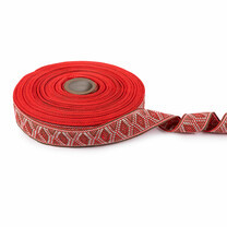 Лента жаккардовая 30 мм "Gamma" C3881 25 м отделочная "Орнамент для северных народов" рис 9854 № 2 красн/бел/зеленый