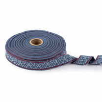 Лента жаккардовая 30 мм "Gamma" C3881 25 м отделочная "Орнамент для северных народов" рис 9862 № 2 джинс/бел/красный