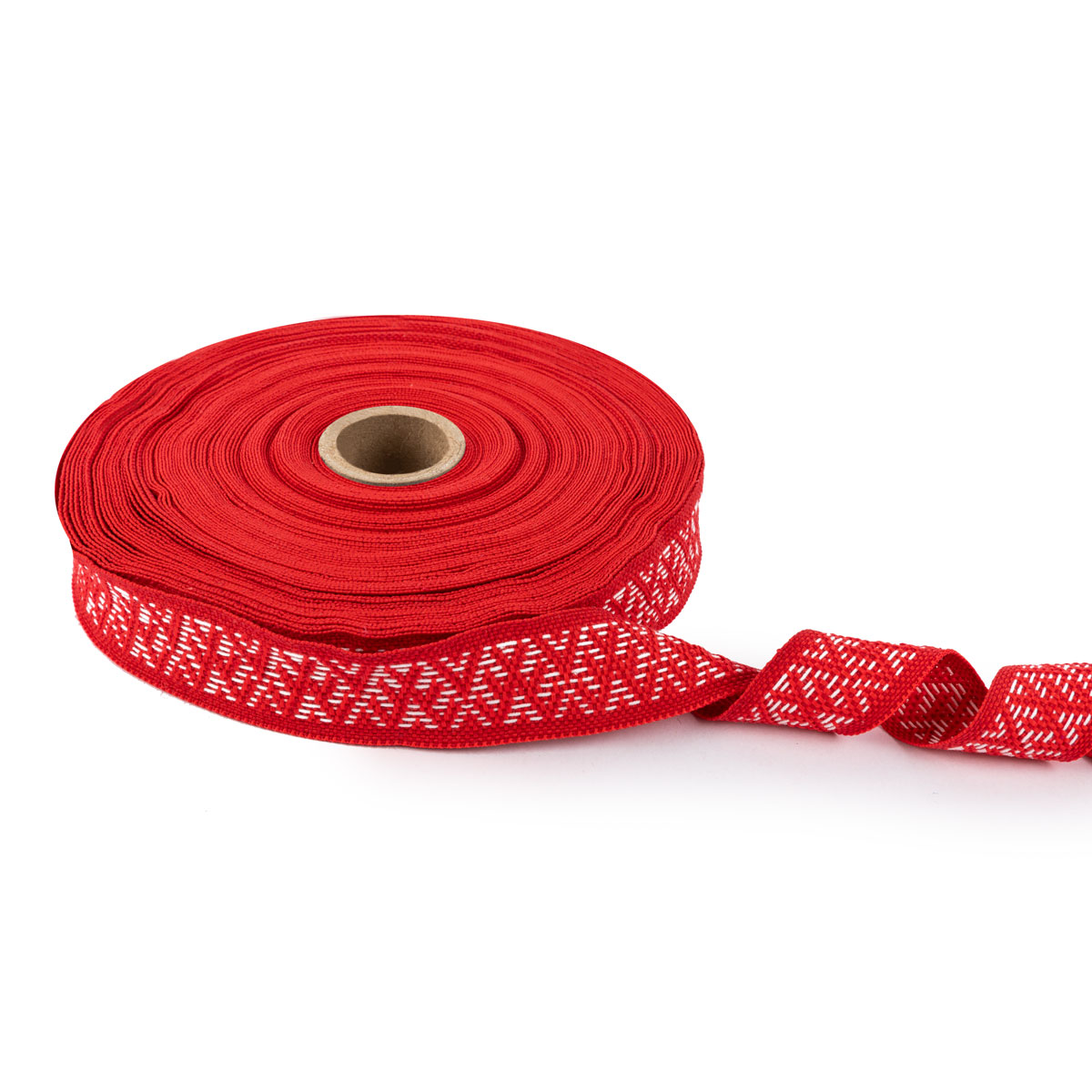 Лента жаккардовая 30 мм "Gamma" C3881 25 м отделочная "Орнамент для северных народов" рис 9862 № 1 красн/белый