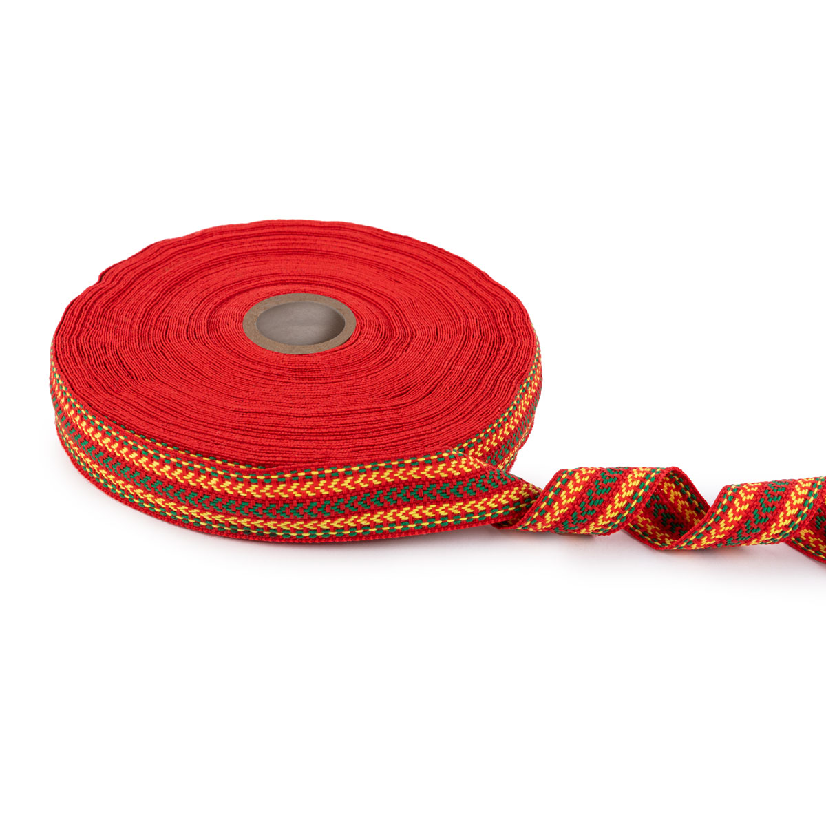 Лента жаккардовая 30 мм "Gamma" C3881 25 м отделочная "Орнамент для северных народов" рис 9870 № 1 красн/желт/зеленый