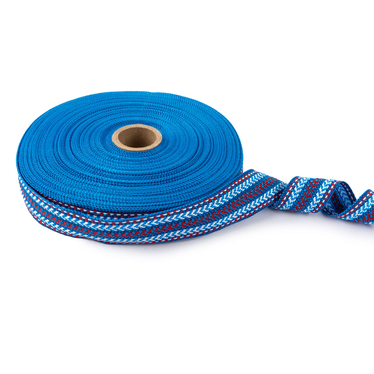 Лента жаккардовая 30 мм "Gamma" C3881 25 м отделочная "Орнамент для северных народов" рис 9870 № 2 син/красн/белый