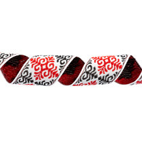 Лента жаккардовая 32 мм "Gamma" С3774 25 м отделочная "Орнамент для северных народов" рис 9788 белый-красный-черный