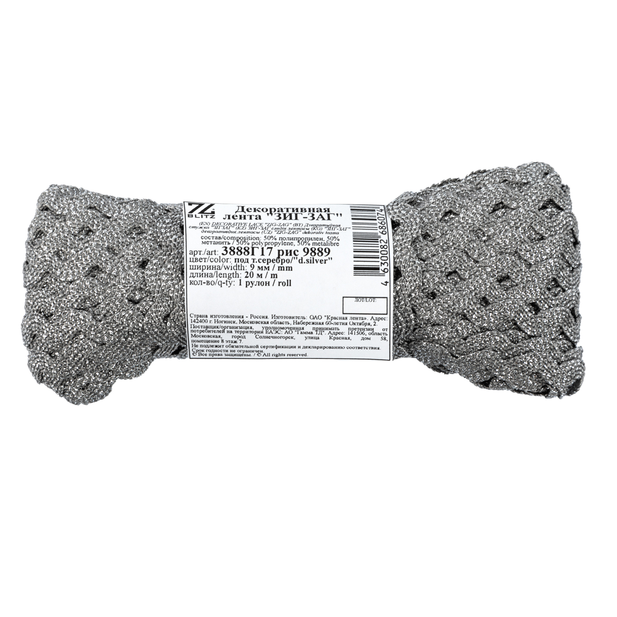 "BLITZ" 3888Г17 рис 9889 лента декоративная "ЗИГ-ЗАГ" 9 мм 20 м под т.серебро/"d.silver"