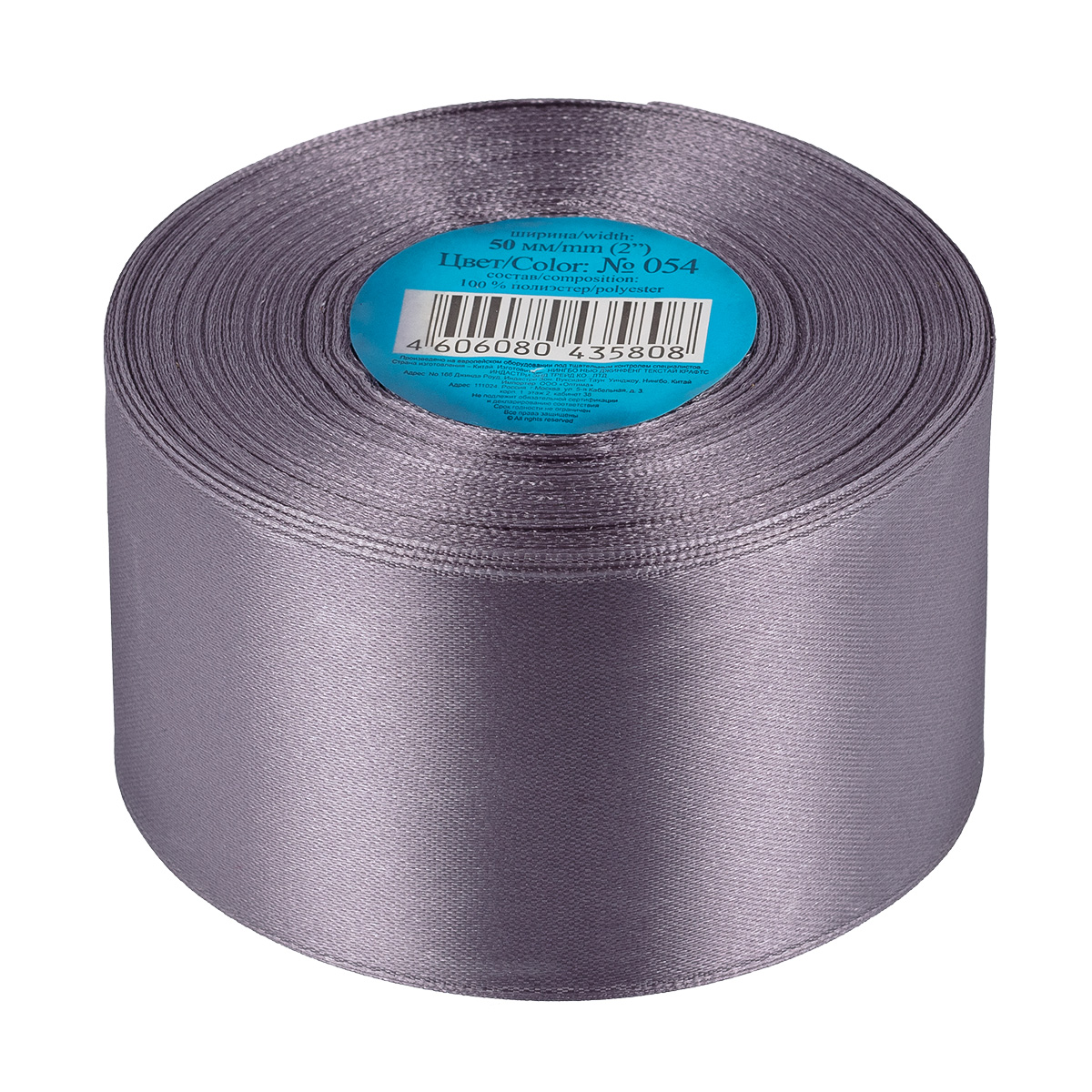 Лента атласная 50 мм ( 2 ") "Gamma" в ТЕРМОПЛЕНКЕ 33 м ± 2 м №054 т.серый