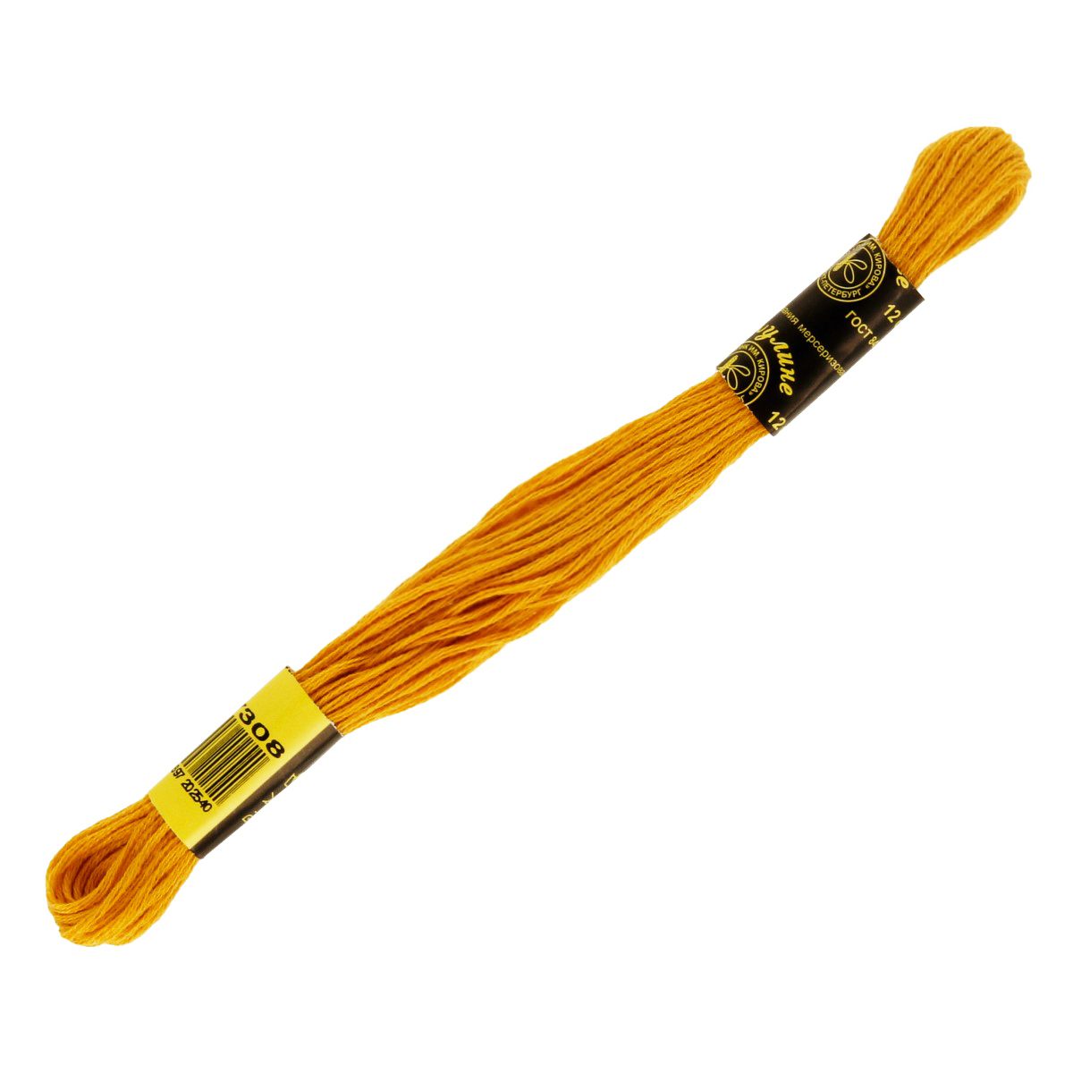 Нитки для вышивания "ПНК им. Кирова" мулине 100% мерсеризованный хлопок 24 x 8 м №7308 золотистый