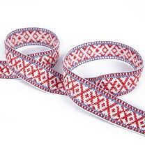 Лента жаккардовая 38 мм "Gamma" С3822 25 м отделочная, для пояса рис 9860 бело/красный №2