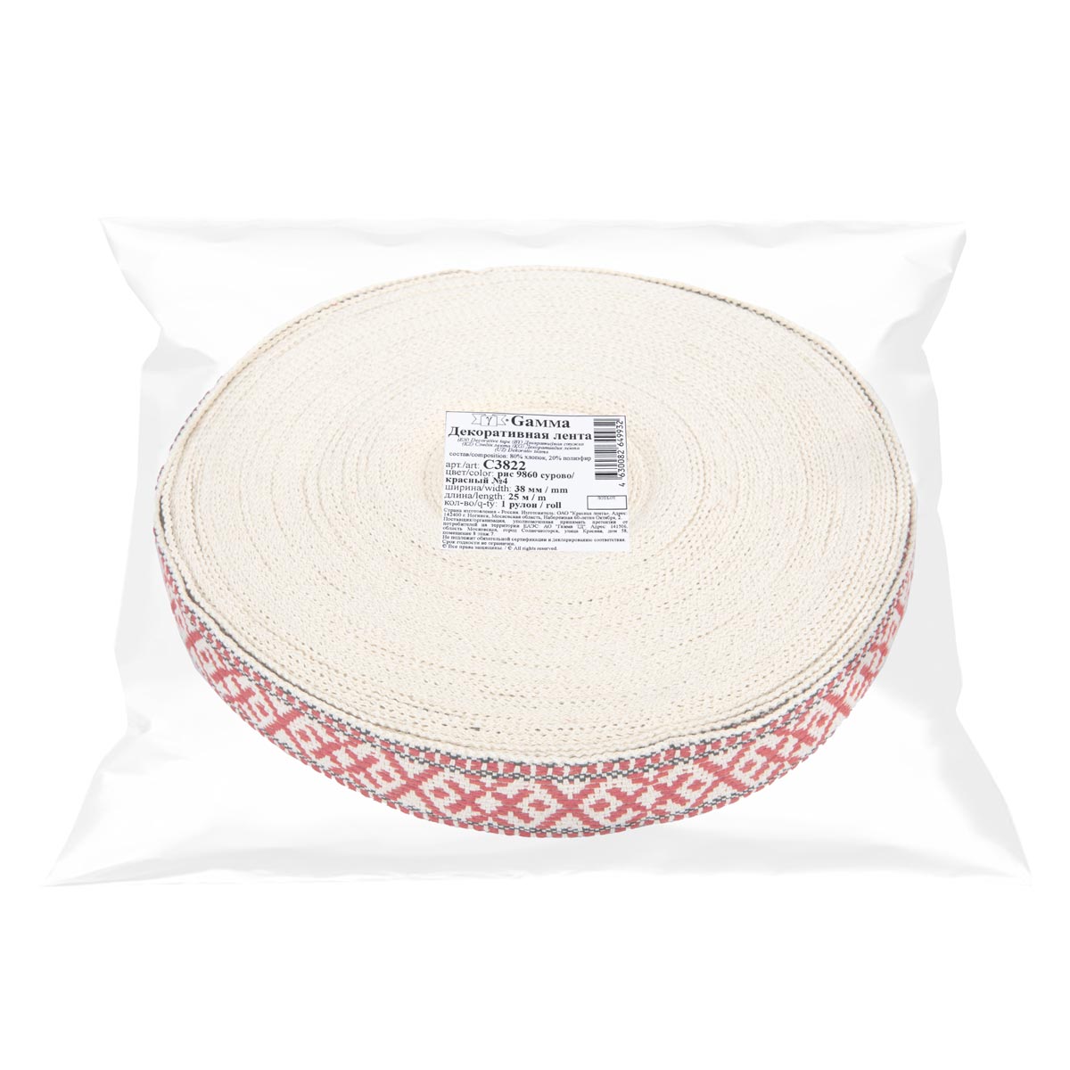 Лента жаккардовая 38 мм Gamma С3822 25 м отделочная, для пояса рис 9860 сурово/красный №4. В интернет-магазине Канцлер Арт широкий ассортимент товаров, быстрая доставка и регулярные скидки.