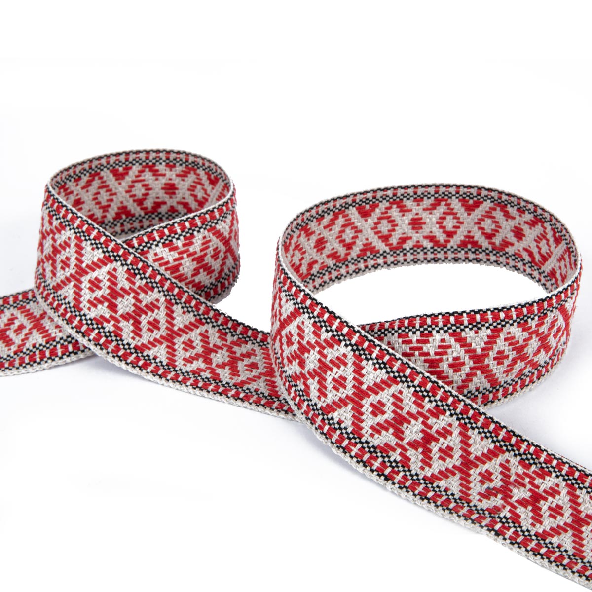 Лента жаккардовая 38 мм "Gamma" С3822 25 м отделочная, для пояса рис 9860 лен/красный №5