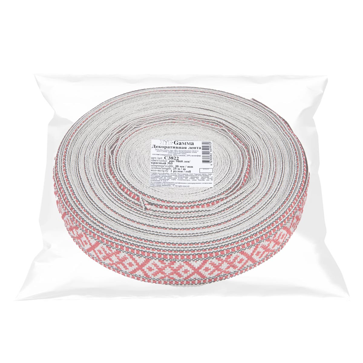 Лента жаккардовая 38 мм Gamma С3822 25 м отделочная, для пояса рис 9860 лен/красный №5. В интернет-магазине Канцлер Арт широкий ассортимент товаров, быстрая доставка и регулярные скидки.