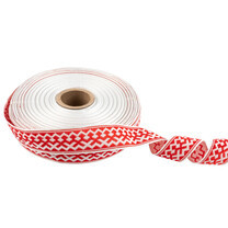 Лента жаккардовая 24 мм "Gamma" С3772 25 м Лента отделочная "Орнамент для северных народов" рис 7527 белый/красный (№1)