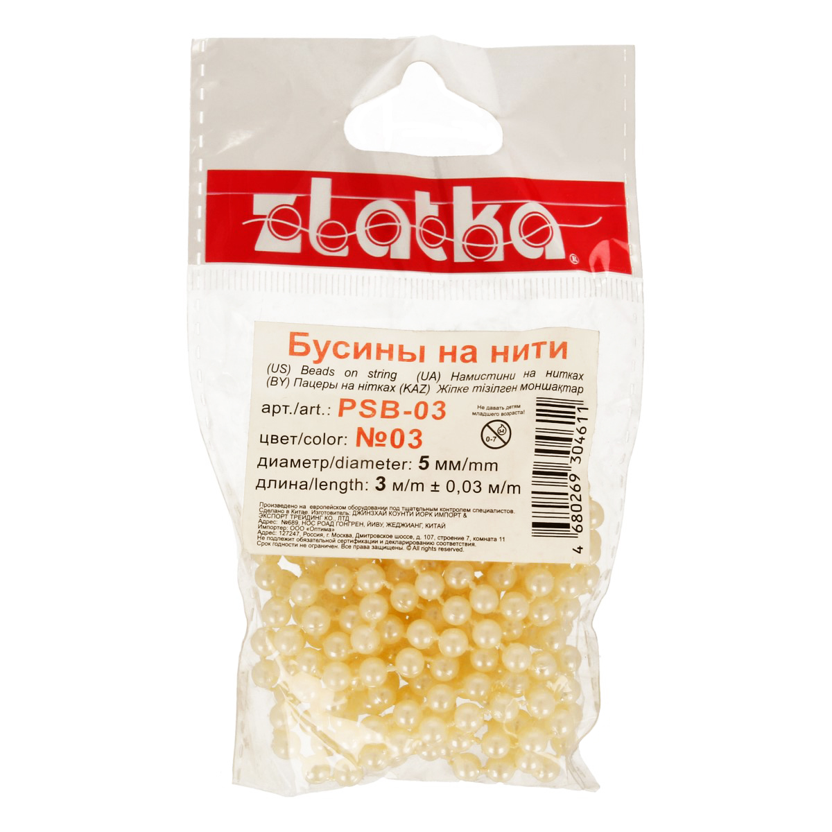 Бусина "Zlatka" на нити под жемчуг пластик PSB-03 5 мм 3 м ± 0.03 м №03 св.кремовый