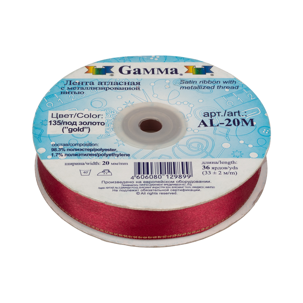 Лента атласная 20 мм Gamma AL-20M двухстор. с металл. нитью 33 м ± 2 м №135 бордо/золото. В интернет-магазине Канцлер Арт широкий ассортимент товаров, быстрая доставка и регулярные скидки.