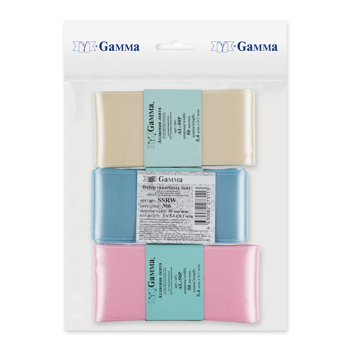 Маркетплейс Gamma SSRW Набор свадебных лент 50 мм 3 шт 5.4 м №6 кремовый-голубой-розовый. В интернет-магазине Канцлер Арт широкий ассортимент товаров, быстрая доставка и регулярные скидки.
